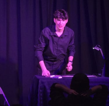 Jacob delivers a high impact theatrical performance designed to captivate larger audiences all at once. Blending sharp wit, expert sleight of hand, and impossible mind reading, this show brings bold visuals and interactive moments to the stage