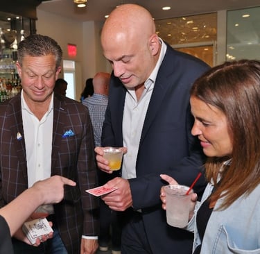 Jacob offers an intimate and engaging performance where he connects with your entire group at once, delivering his finest card handling and mind-boggling magic. Perfect for gatherings of up to 50 guests.